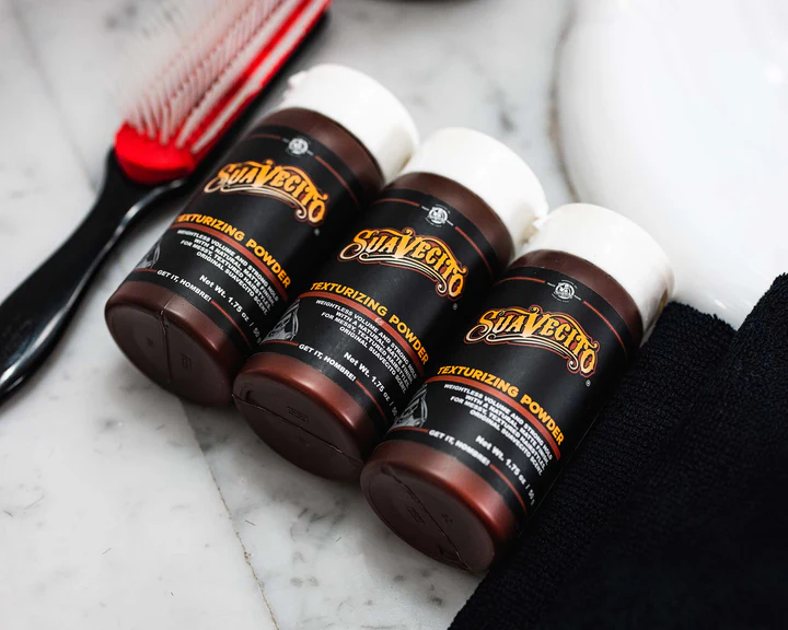 A veces, nuestro cabello puede sentirse un poco plano y sin vida. Suavecito Hair Texture Powder es una herramienta de peinado esencial que querrás tener en tu arsenal de cuidado del cabello. Diseñado para añadir volumen, crear textura y eliminar impurezas de tu cabello, pronto se convertirá en tu nuevo producto favorito. Su acabado mate crea una fijación invisible que durará todo el día. Tiene propiedades antiaglomerantes y absorbentes de aceite, lo que permite un uso continuo y perfecto sin ser detectado. Nuestro tamaño considerable de 1,75 oz. La botella garantiza un uso duradero, dejándote con un aspecto firme durante todo el dia.